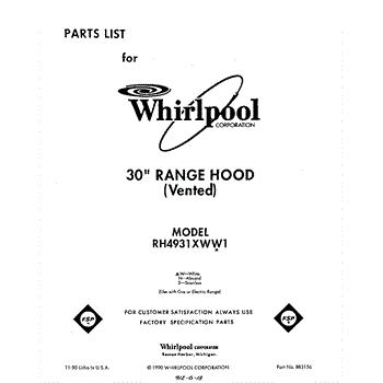 Parts for Whirlpool RH4931XWW1: 01 - Section Parts
