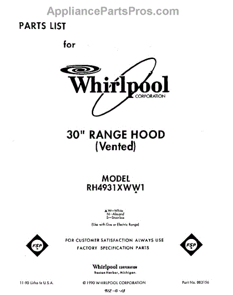 Parts for RH4931XWW1
