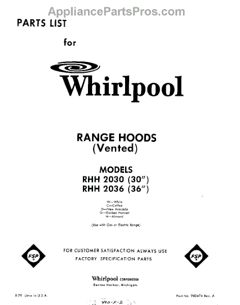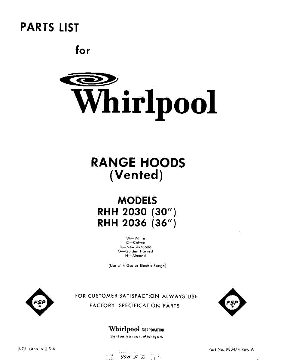 Parts for Whirlpool RHH2036: 01 - Section Parts
