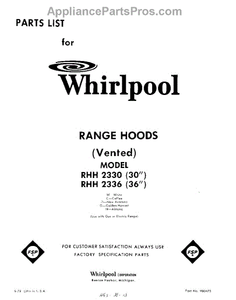 Parts for Whirlpool RHH2336: 01 - Section Parts