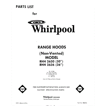 Parts for Whirlpool RHH2630: 01 - Section Parts