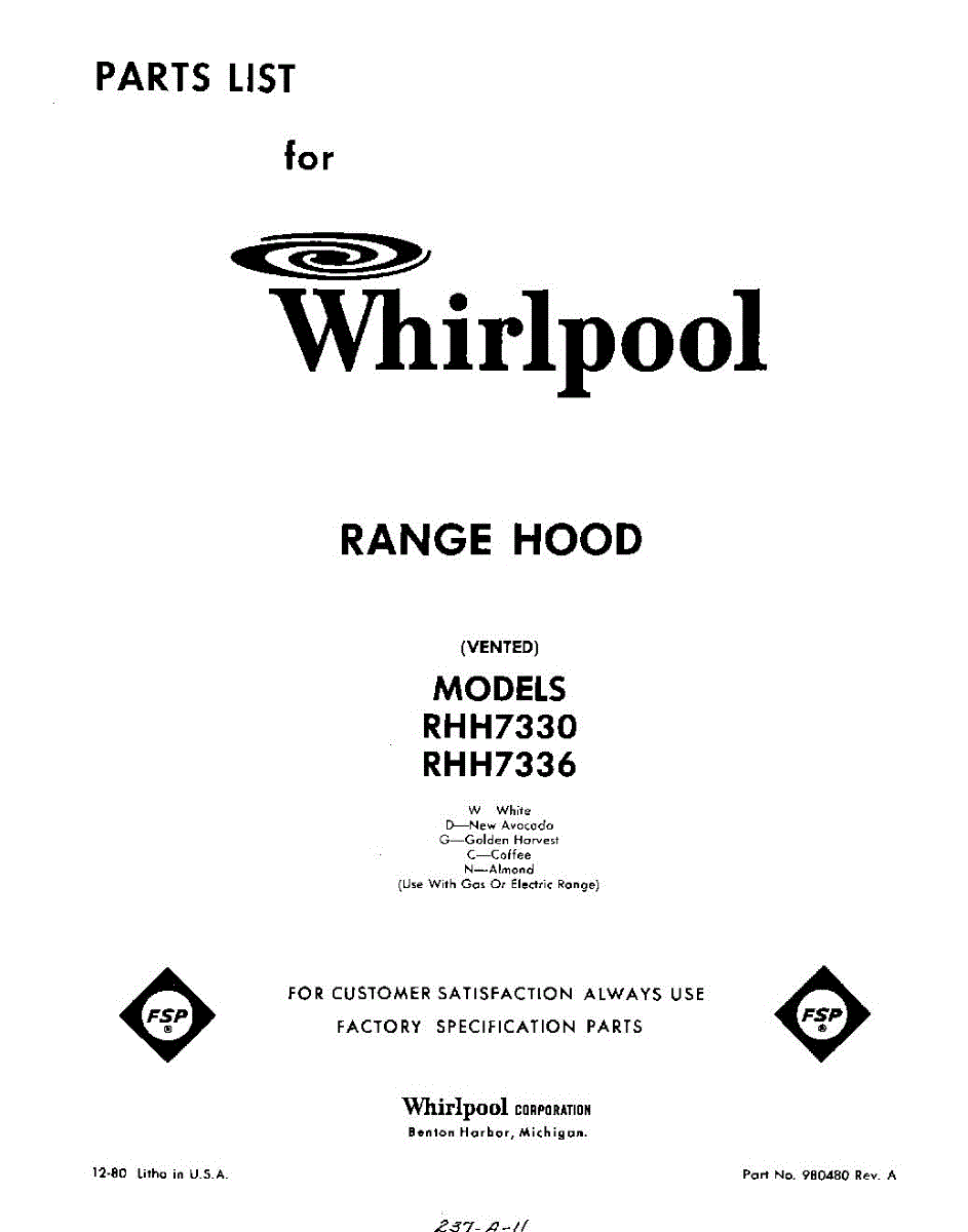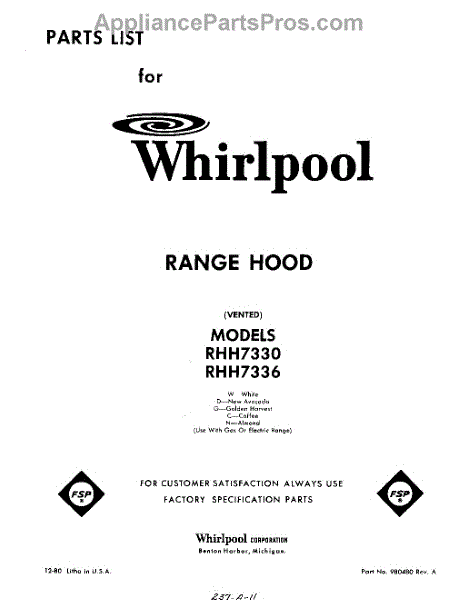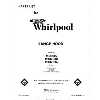 Parts for Whirlpool RHH7336: 01 - Section Parts