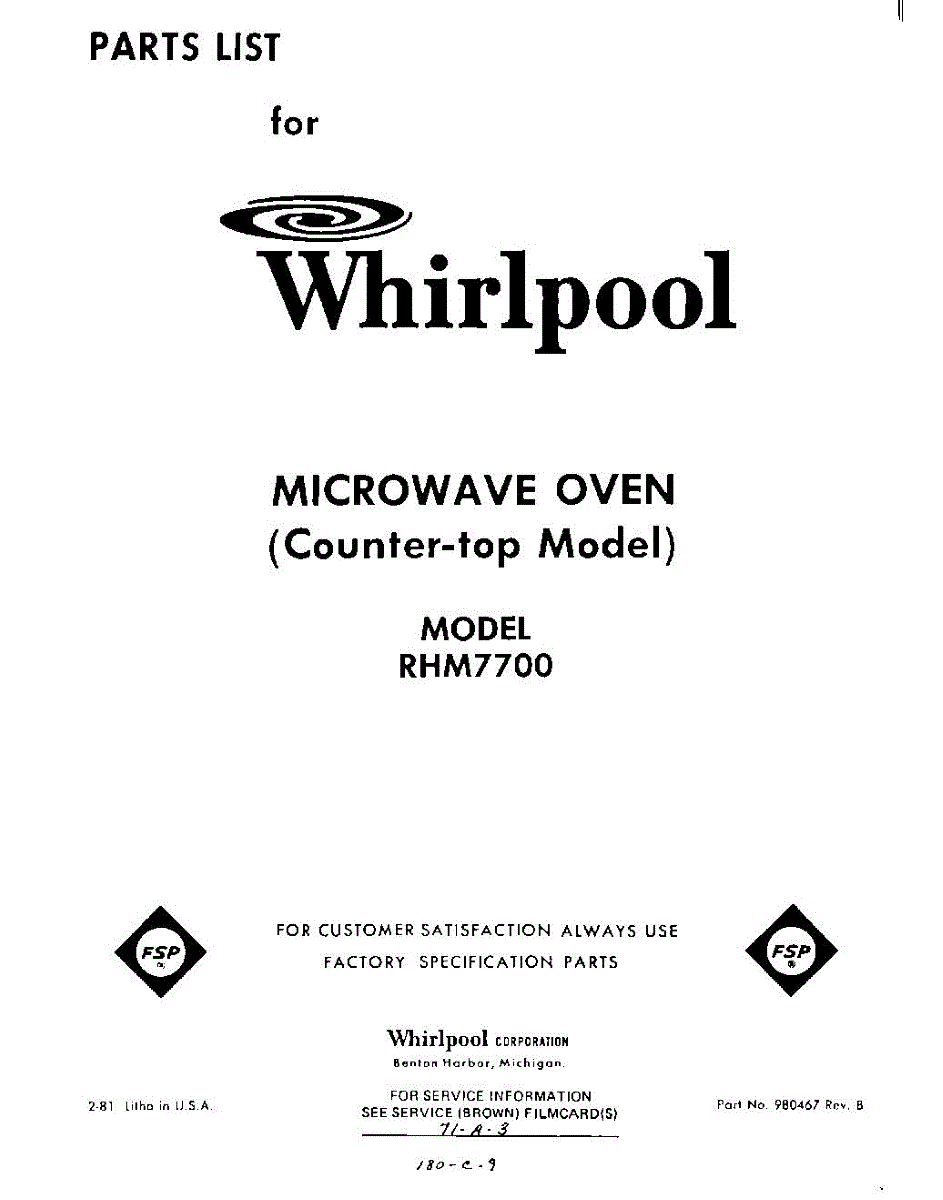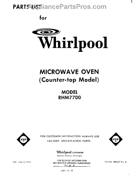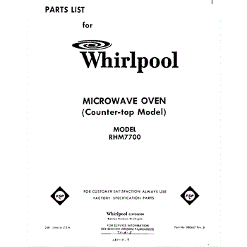 Parts for Whirlpool RHM7700: 01 - Section Parts