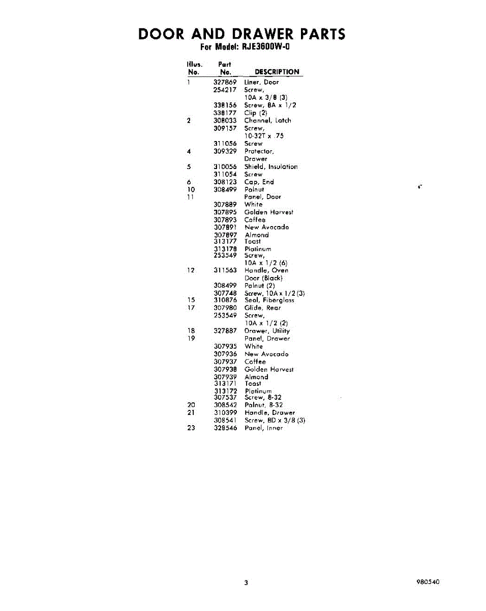 Parts for Whirlpool RJE3600W0: 03 - Section Parts