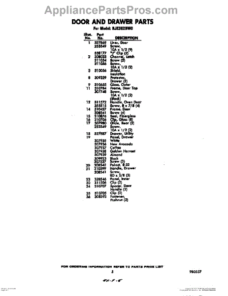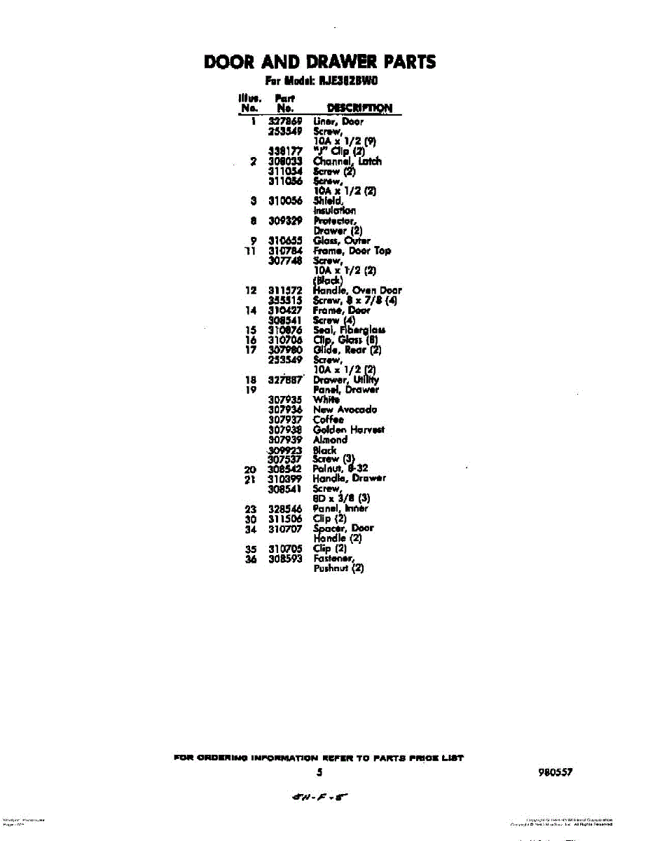 Parts for Whirlpool RJE362BW0: 05 - Section Parts