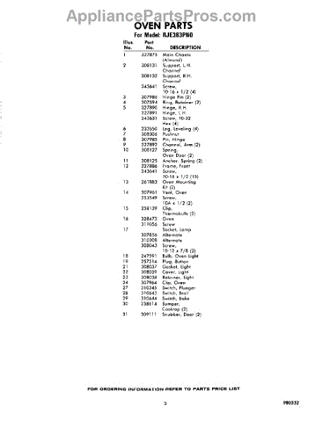 Parts for Whirlpool RJE363PN0: 03 - Section Parts