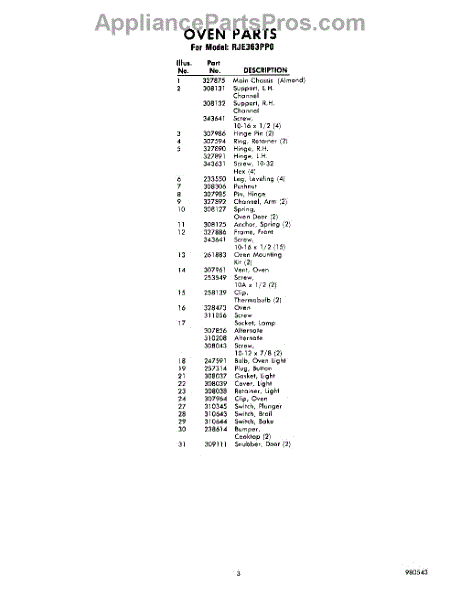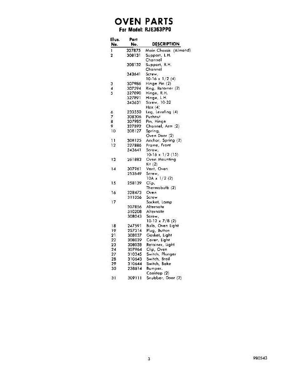 Parts for Whirlpool RJE363PP0: 03 - Section Parts