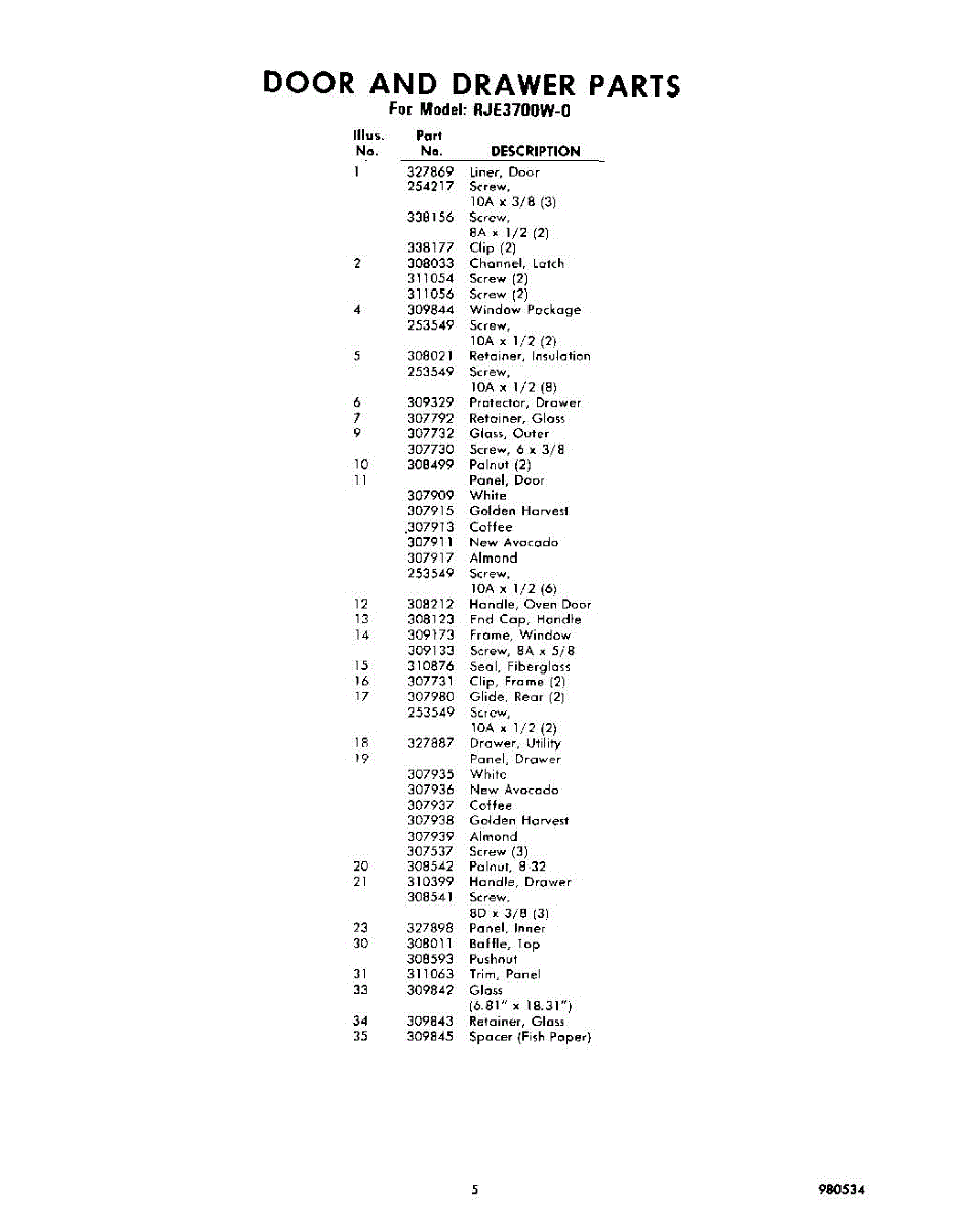 Parts for Whirlpool RJE3700W0: 05 - Section Parts