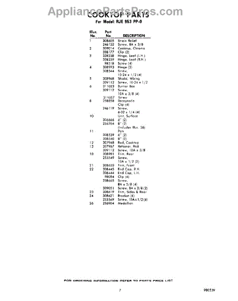 Parts for Whirlpool RJE953PP0: 07 - Section Parts