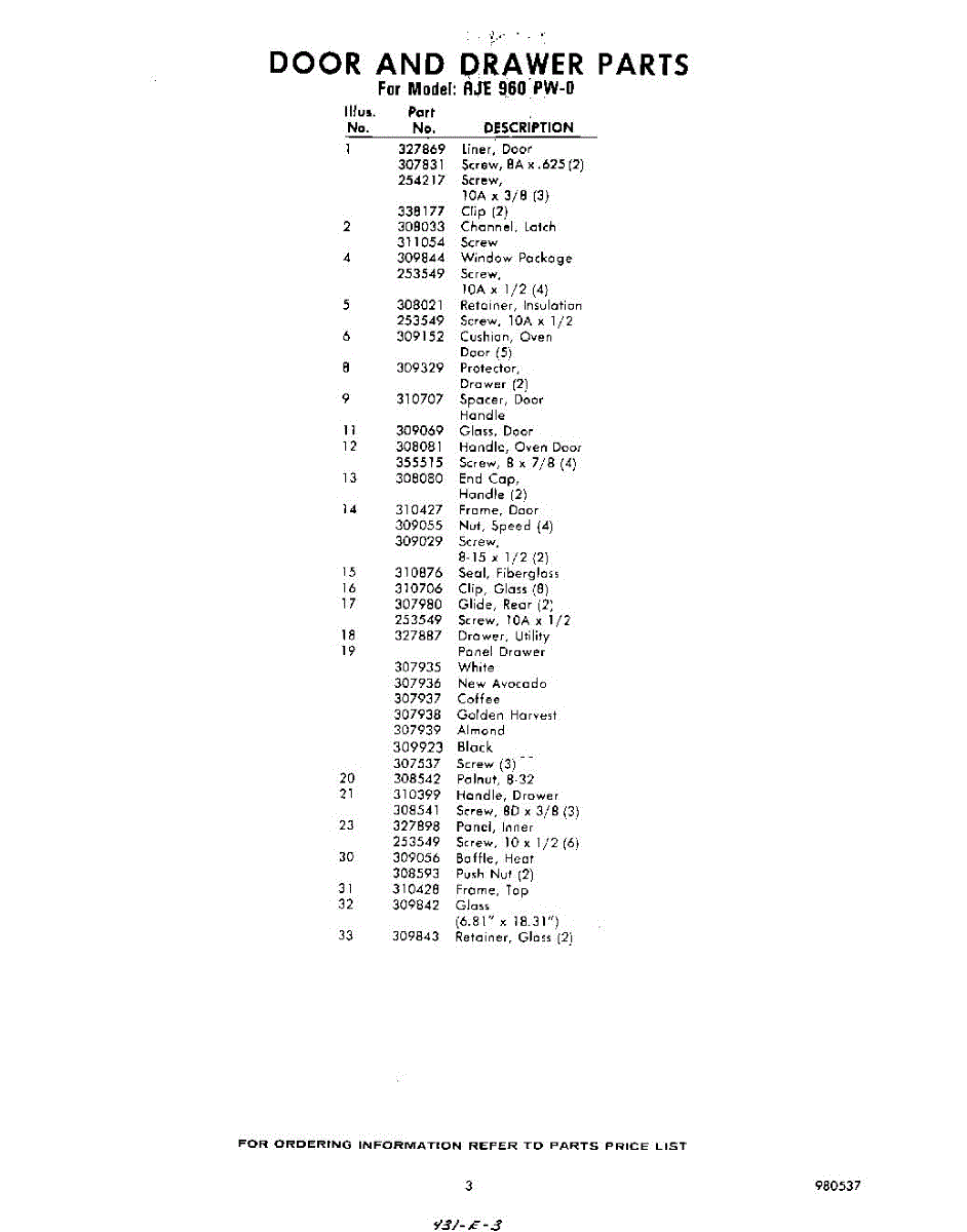 Parts for Whirlpool RJE960PW0: 03 - Section Parts