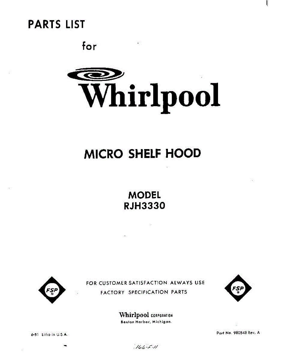Parts for Whirlpool RJH3330: 01 - Section Parts