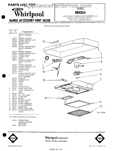 Parts for Whirlpool RRH261: 01 - Section Parts