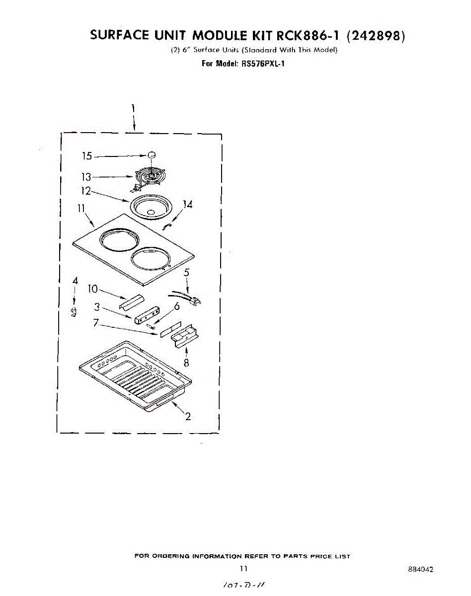 Complete stainless steel cook top cartridge. For individual elements order WP660533 or WP660532.