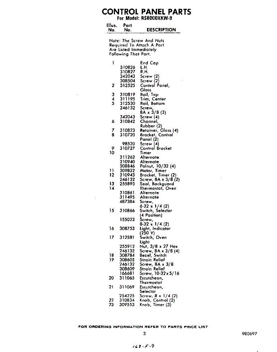 Parts for Whirlpool RS6000XKW9: 03 - Section Parts