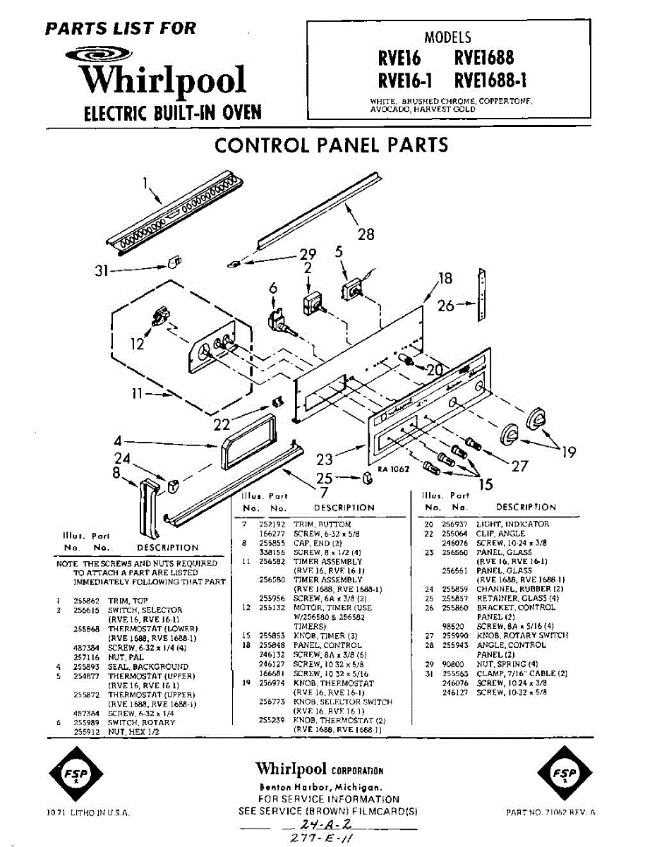 Parts for RVE16881
