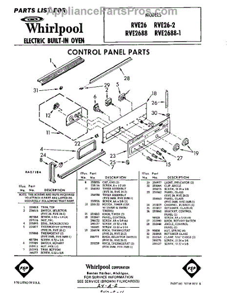 Parts for Whirlpool RVE2688: 01 - Section Parts