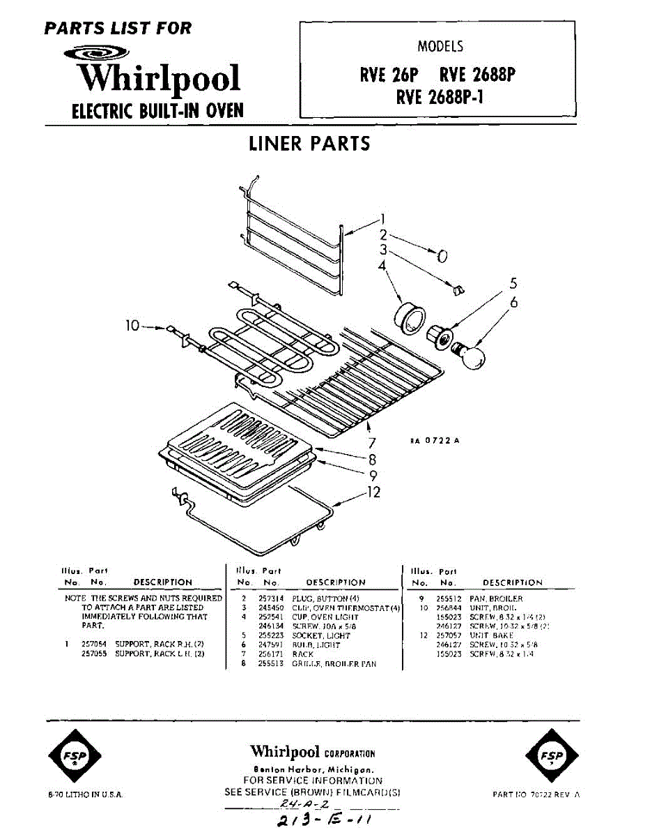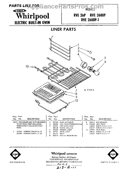 Parts for Whirlpool RVE26P: 01 - Section Parts