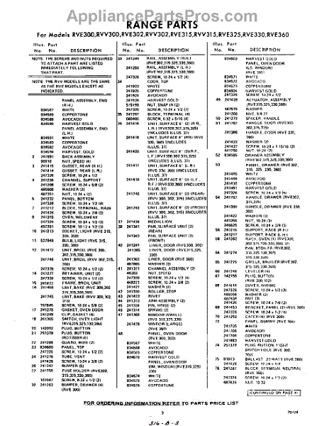 Parts for Whirlpool RVE325: 03 - Section Parts