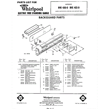 Parts for Whirlpool RVE4300: 01 - Section Parts