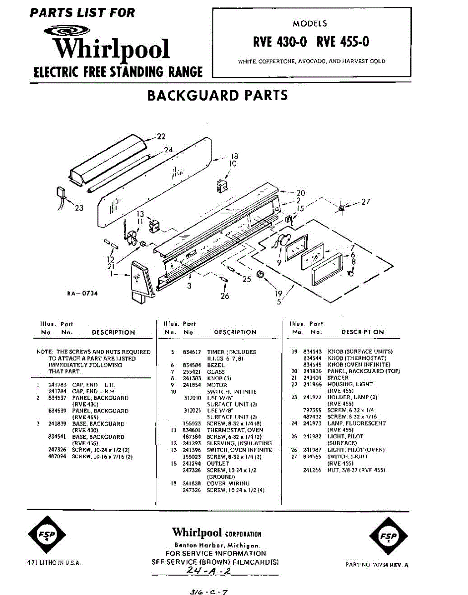 Parts for Whirlpool RVE4550: 01 - Section Parts