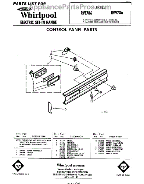 Parts for Whirlpool RVE786: 01 - Section Parts