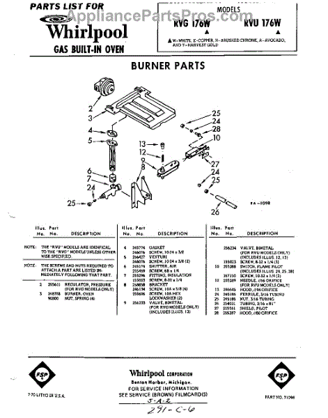 Parts for RVU176W