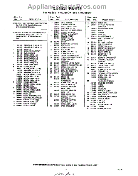 Parts for Whirlpool RVU2660W: 03 - Section Parts