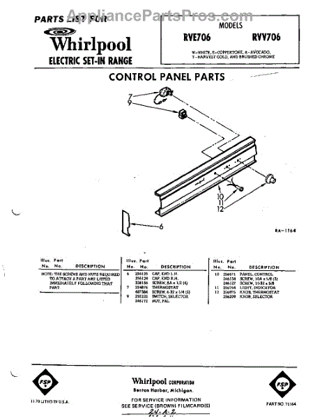 Parts for Whirlpool RVV706: 01 - Section Parts