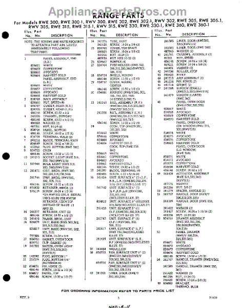 Parts for Whirlpool RWE3001: 03 - Section Parts