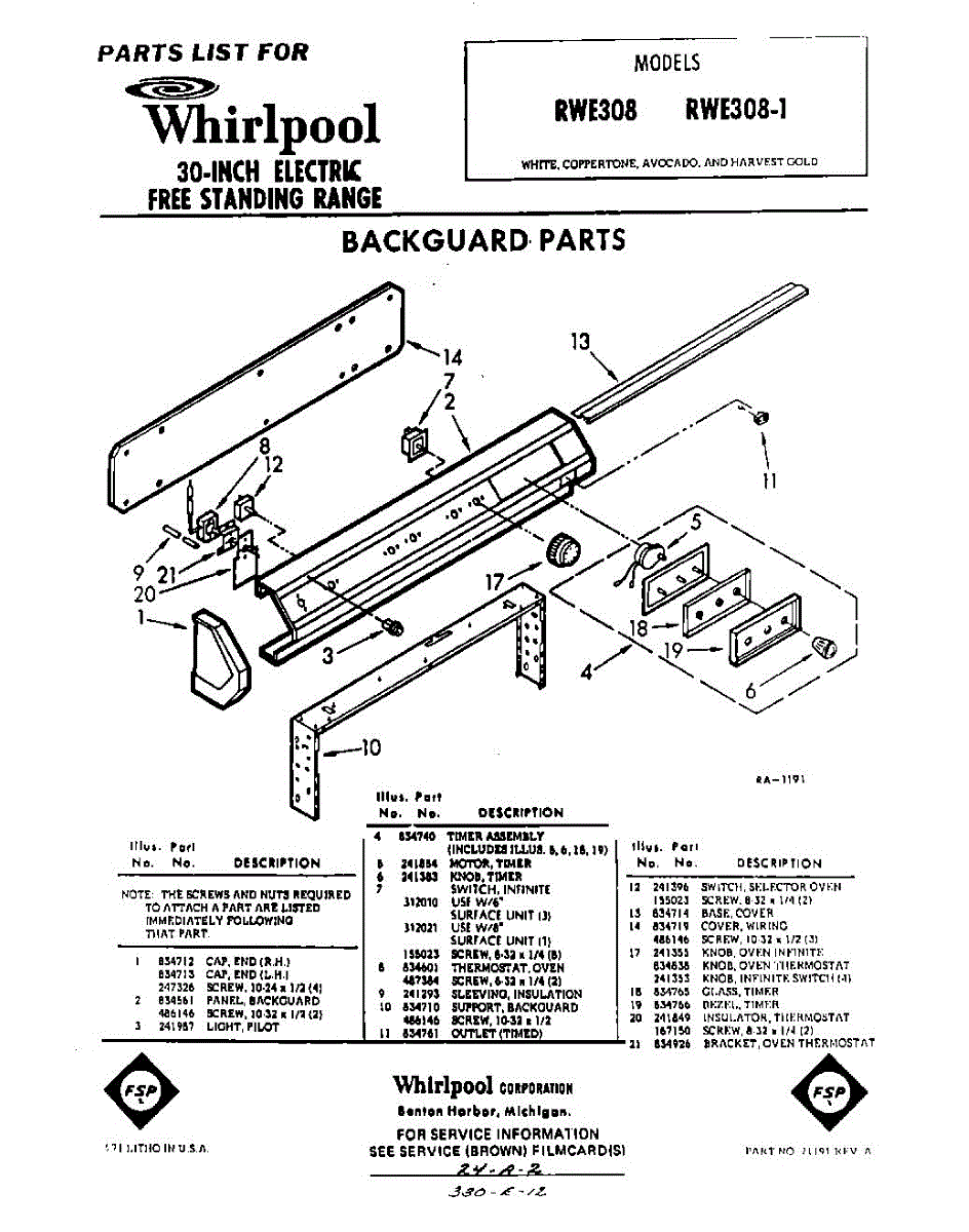 Parts for Whirlpool RWE3081: 01 - Section Parts