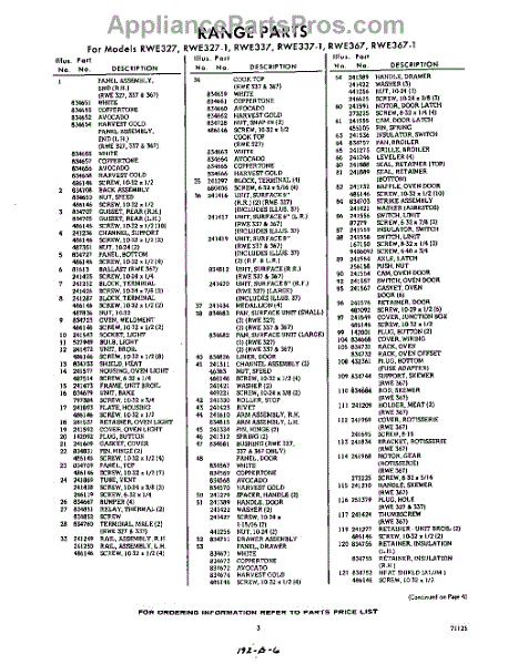 Parts for Whirlpool RWE327: 03 - Section Parts