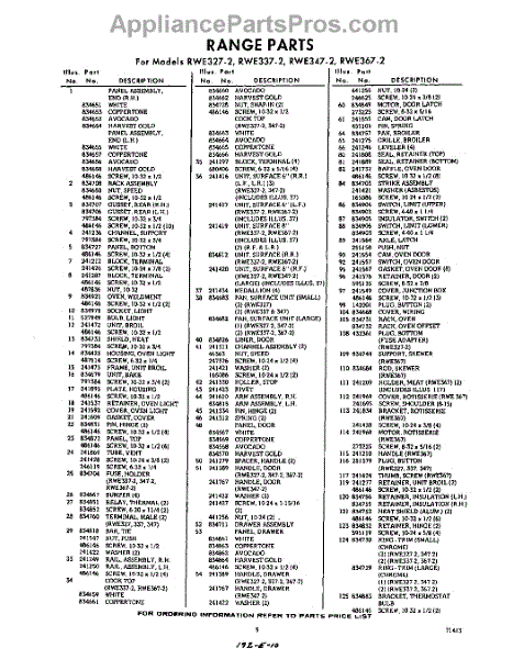 Parts for Whirlpool RWE3272: 05 - Section Parts