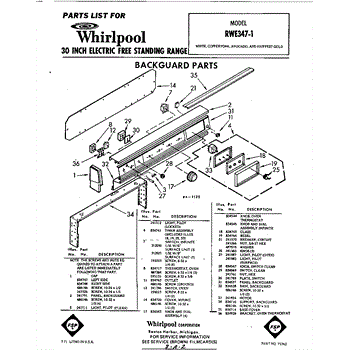 Parts for Whirlpool RWE3471: 01 - Section Parts
