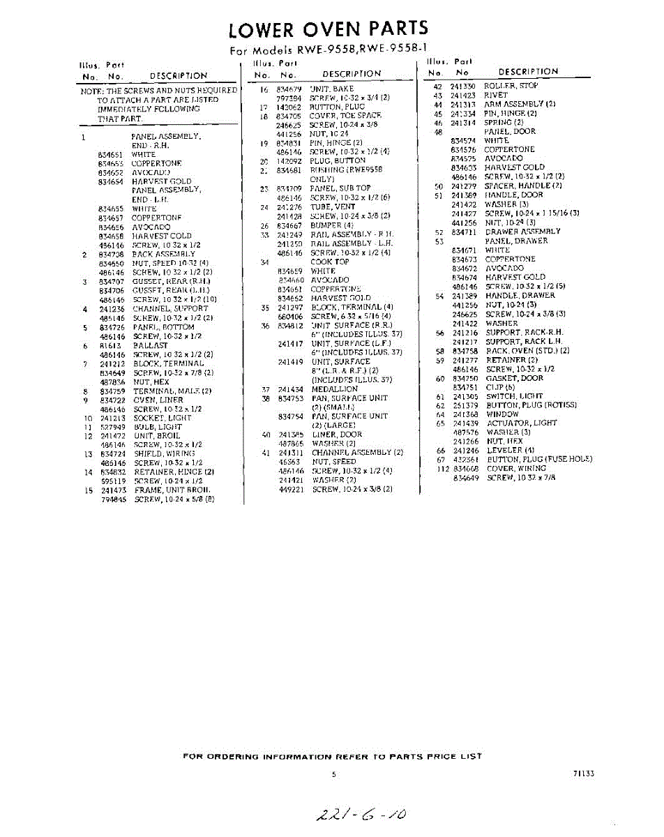Parts for Whirlpool RWE95581: 05 - Section Parts