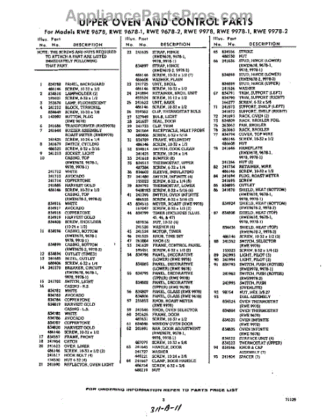 Parts for Whirlpool RWE9978: 03 - Section Parts