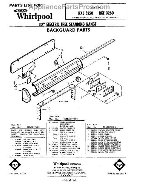 Parts for Whirlpool RXE3260: 01 - Section Parts