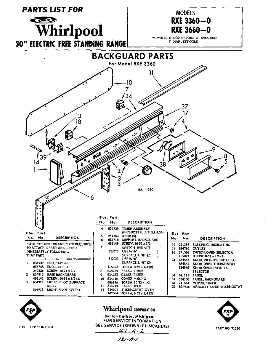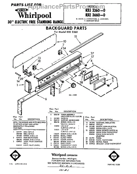 Parts for Whirlpool RXE3660: 01 - Section Parts