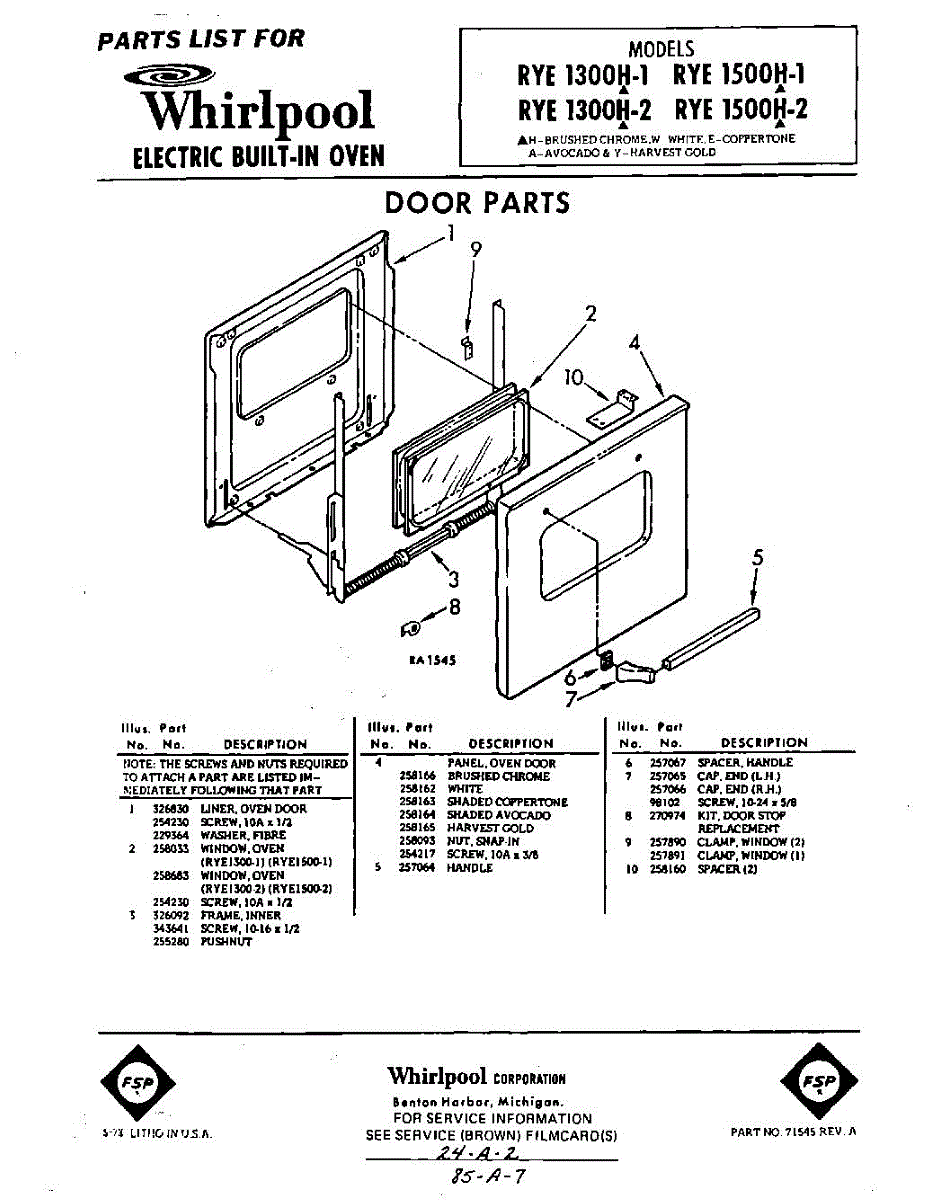 Parts for Whirlpool RYE1300W2: 01 - Section Parts