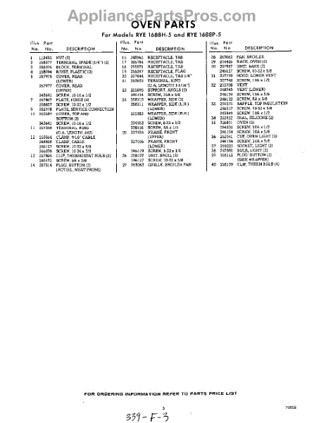 Parts for Whirlpool RYE1688W5: 03 - Section Parts