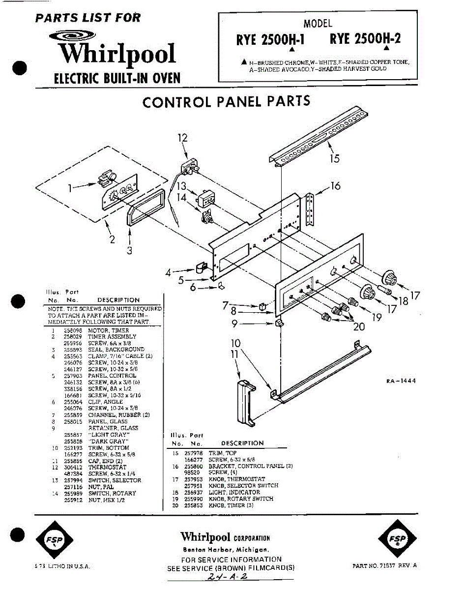 Parts for Whirlpool RYE2500W2: 01 - Section Parts