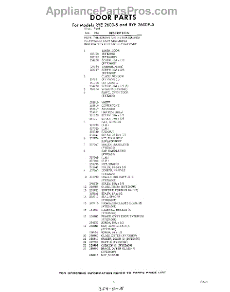 Parts for Whirlpool RYE26005: 05 - Section Parts