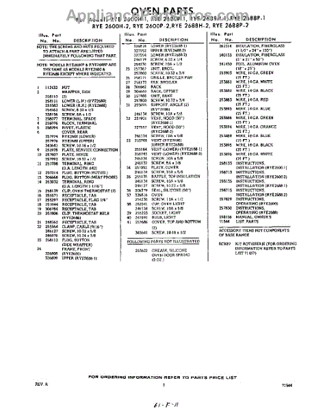 Parts for RYE2600W2
