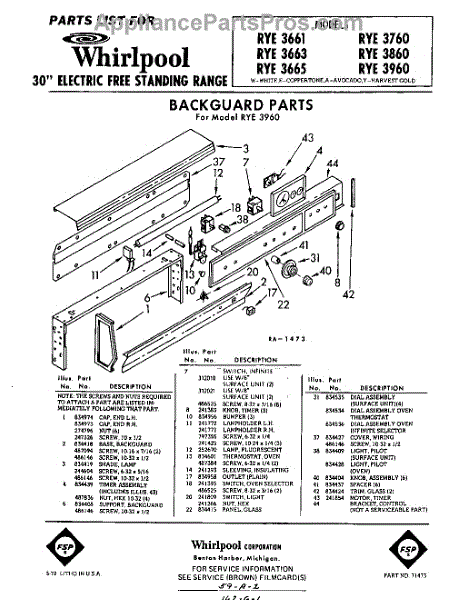 Parts for Whirlpool RYE3663: 01 - Section Parts
