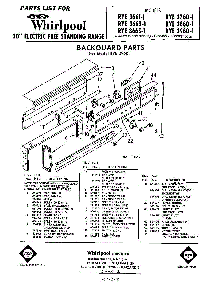 Parts for Whirlpool RYE36631: 01 - Section Parts