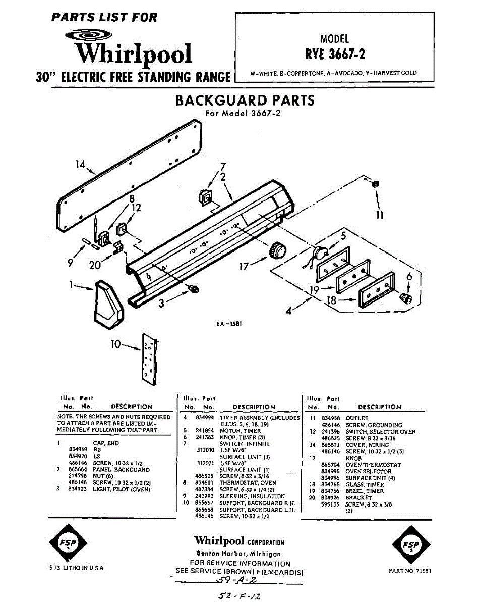 Parts for RYE36672