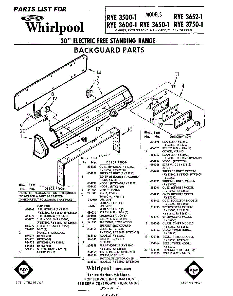 Parts for Whirlpool RYE37501: 01 - Section Parts