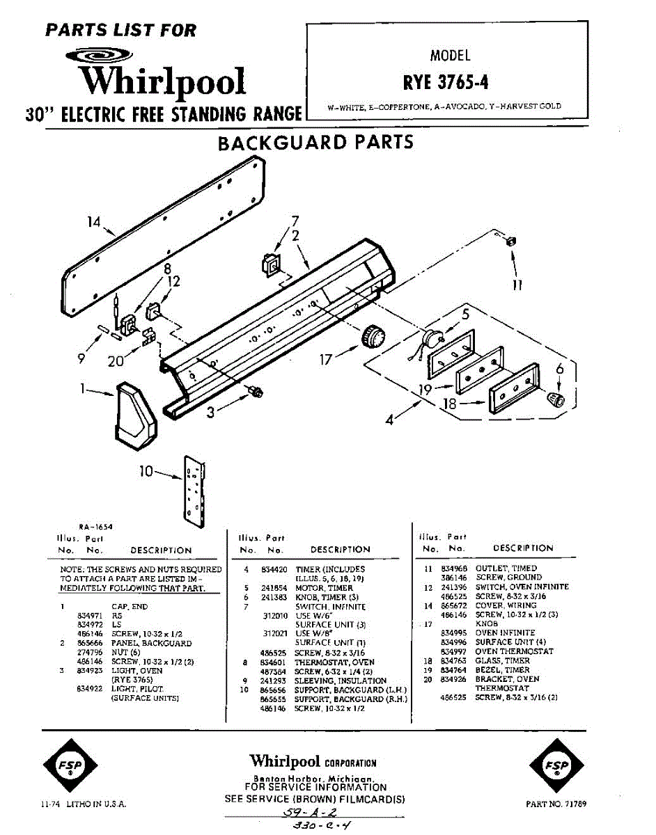 Parts for Whirlpool RYE37654: 01 - Section Parts