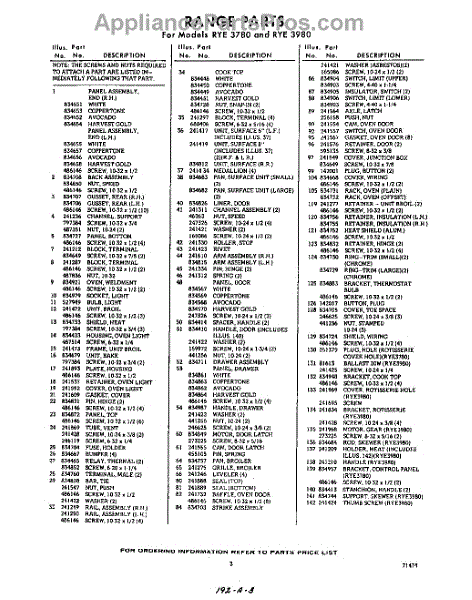 Parts for Whirlpool RYE3780: 03 - Section Parts