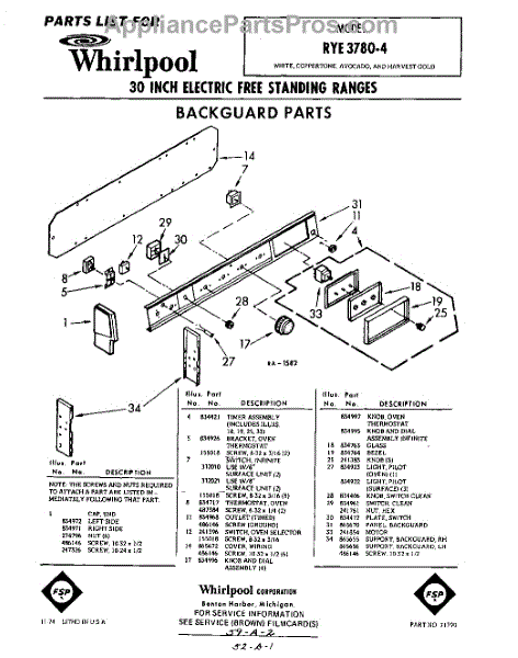 Parts for Whirlpool RYE37804: 01 - Section Parts