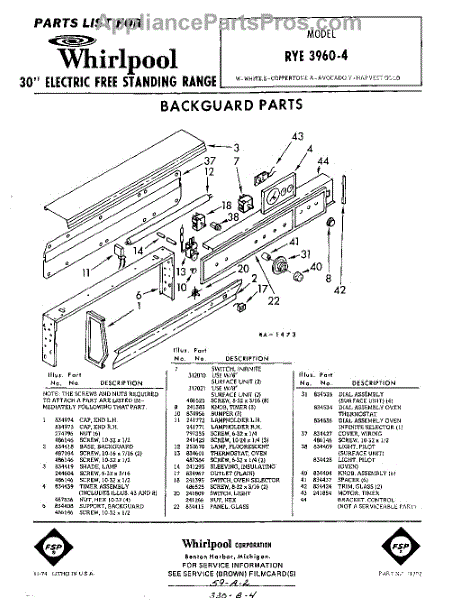 Parts for Whirlpool RYE39604: 01 - Section Parts